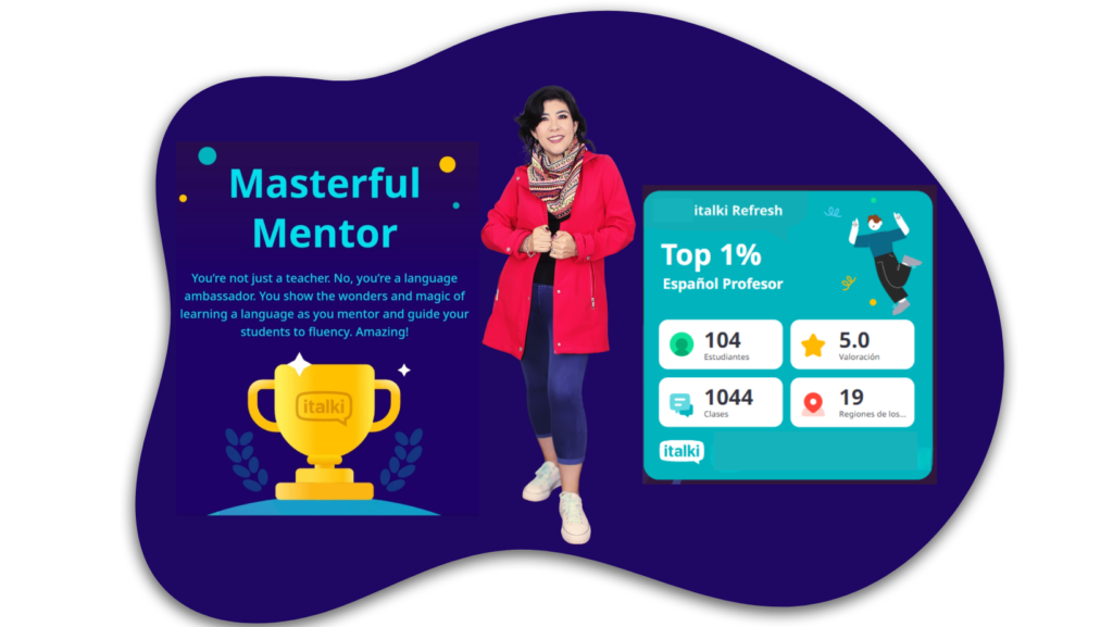 Generalmente, este es el espacio en el que se espera que comparta mis logros en tercera persona, ¿verdad? Pero hagámoslo de manera diferente. Estoy aquí para enseñarte español o para guiarte en el camino de convertirte en profesor o profesora de español para extranjeros, mientras diseñamos juntos una vida que te llene de felicidad.